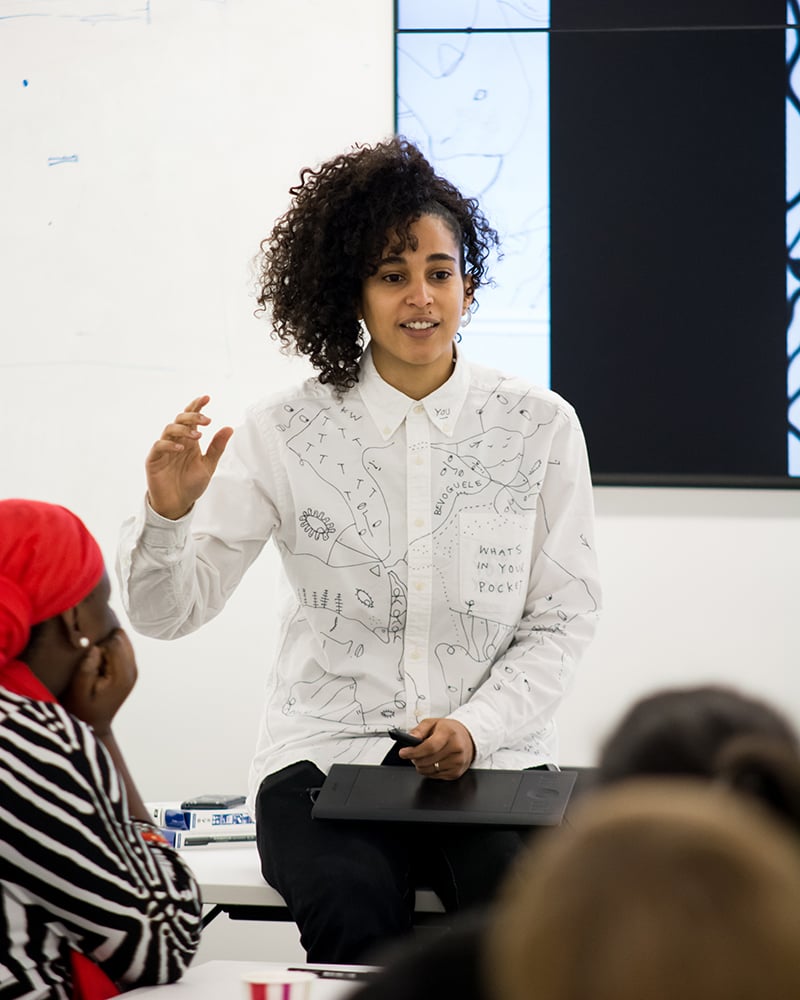 From London to Tokyo to New York, internationally acclaimed visual artist Shantell Martin is expanding conventional definitions of drawing and animation to transform visual experience in the design, fashion and music industries. Her dazzling light projections have been featured in iconic spots such as New York’s Museum of Modern Art, the megaclubs of Tokyo and Russia, and on the enormous screens at Shibuya and Harajuku crossings in Tokyo. Martin has quickly infiltrated popular culture stateside — she’s been cast as herself on quintessential New York show Gossip Girl, interviewed on CNN, appeared on an NBC morning show, and deemed a muse of super-hip design blog, PSFK. In October 2011, she was interviewed in French Glamour as New York’s “coolest it girl.”